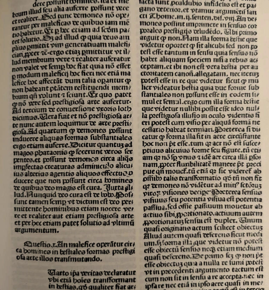 I include a page that discusses whether witches can actually harm or transform people. Kramer concludes that witches could indeed transform, but that it was merely an illusion. If someone were transformed into an animal, it was not a genuine physical transformation. He also states that demons can indeed cause harm, but only to the extent permitted by God.